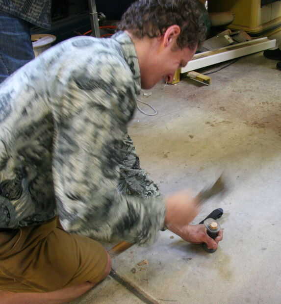 Utilice un martillo grande para interferir con ella hasta allí firmemente.