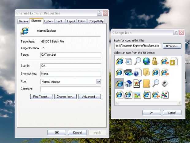 Para cambiar el icono, si haces un acceso directo, simplemente haga clic derecho sobre el acceso directo, seleccione Propiedades y cambiar icono.