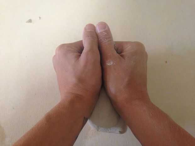 - Envuelva sus manos alrededor de la arcilla que sólo la parte superior de la mitad de la arcilla.