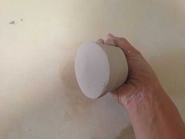 • Con una presión muy suave y rápido movimiento de rotación con su muñeca rodar un punto leve en la parte inferior de la arcilla. Este será el lado que fije abajo en el palo cuando le tiran.