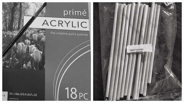 Todo lo anterior puede comprarse en una papelería. Los palillos pueden encontrarse también en el jardín.