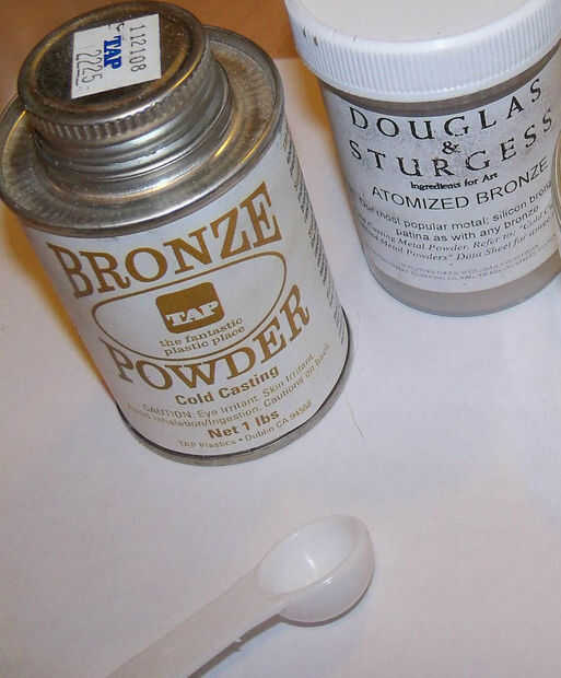 Usar la malla de metal por lo menos-325, tamaño de partícula de 44 micrones. -325 de malla atomizado de metal se vende para uso en 'metal fundición frío', básicamente molde resina aglutinante y polvo de metal para lograr un look similar para fundición de metal. Varios arte proveedores Venta-325 malla metal atomizado, también disponible en línea en Doughlass y Sturgess. Venden de plásticos de grifo bronce en polvo en sus tiendas de ventas por menor, es una aleación de cobre/estaño. Polvos de bronce a veces contienen otros metales, como estaño/cobre/silicio. Cada aleación tiene una distinta temperatura de fusión.