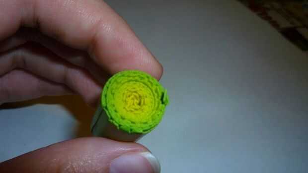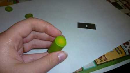Tomar la tira larga de la arcilla y comenzar a rodar en un registro, a partir del final claro/amarillo. Recorte los extremos del tronco y aplaudir su gradiente hermoso.