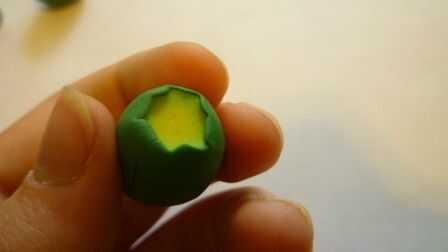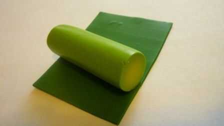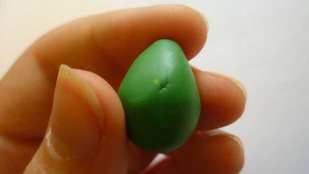 Forma la bola verde de arcilla en forma de lágrima/aguacate.