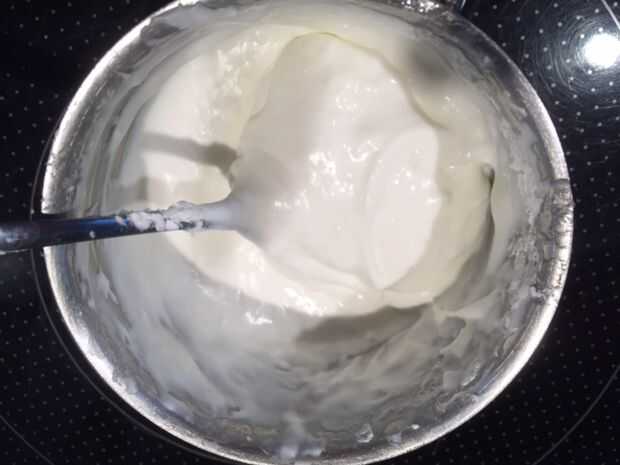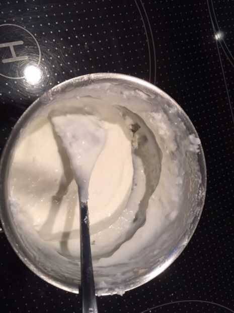 Después de algún tiempo la la pasta es más gruesa... todavía no ha terminado, los brazos necesitan más ejercicio para mantener agitación.