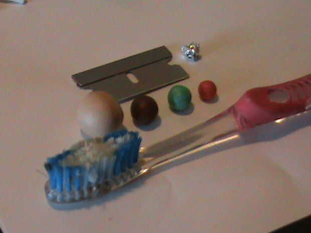 Marrón arcilla, marrón arcilla, arcilla verde, arcilla amarilla (no mostrado), arcilla roja, cuchilla, cepillo de dientes (opcional), pequeña bola de papel de estaño.