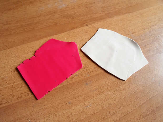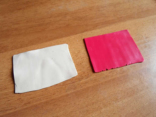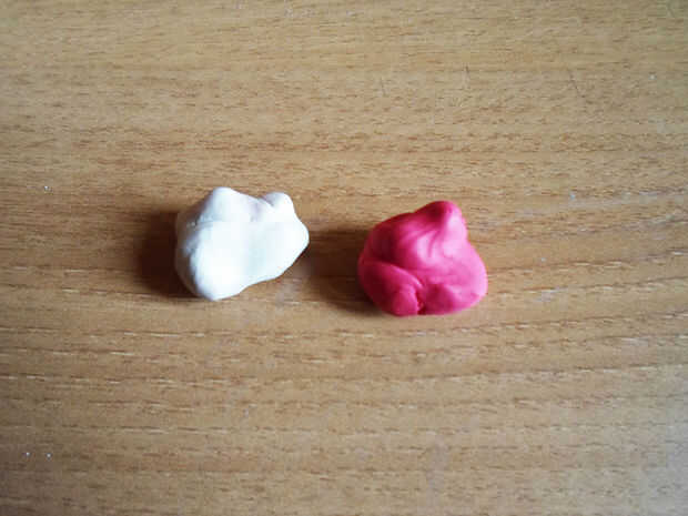 Tomar una pieza de arcilla blanca y un pedazo de arcilla roja. Tienen que ser del mismo tamaño.