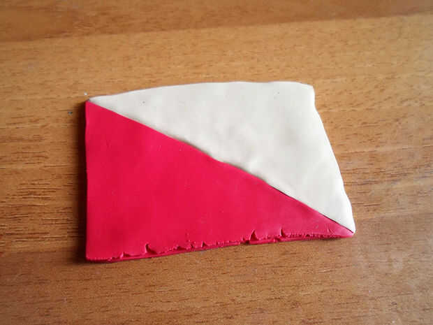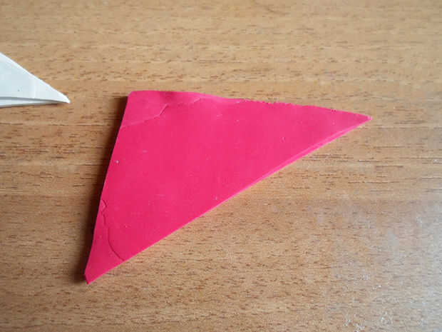 Coloque un triángulo blanco sobre el otro y presione un poco con los dedos para que se peguen juntos.