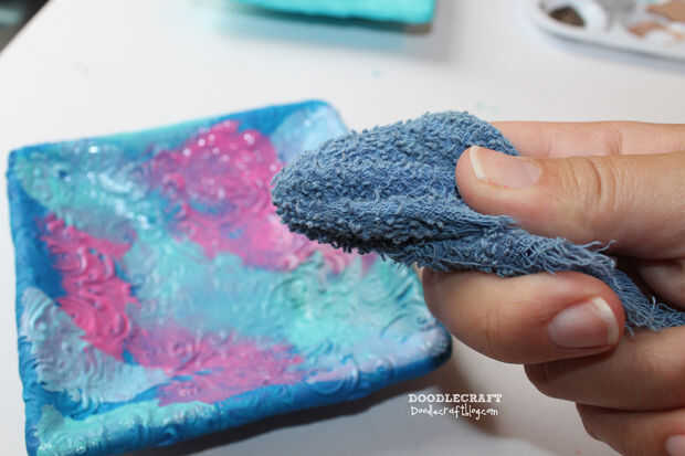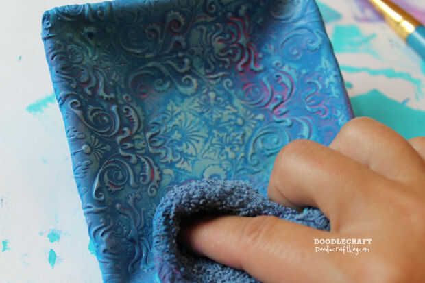 Frote suavemente la pintura de las superficies principales del patrón del Damasco.