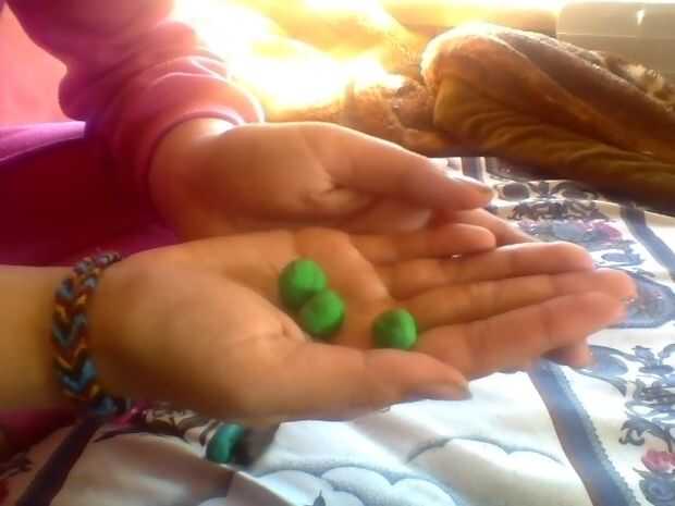 Rollo de la arcilla verde luz a esfera 3. (Guisantes)