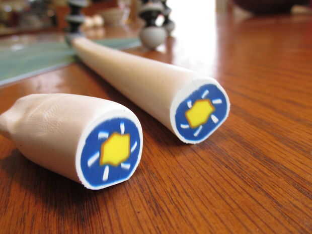 Punta: Para ayudar a mantener las cosas como uniforme posible sandwich la caña entre la tabla y una hoja de acrílico, enróllelo hacia adelante y hacia atrás.