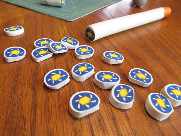 Intente cortar los medallones para que sean todos el mismo espesor, (aproximadamente 1/8"). Necesitarás aproximadamente 20 a 25 medallones para cubrir un huevo y como se puede ver en las fotos habrá un montón de caña sobrado para futuros proyectos o para hacer huevos adicionales.