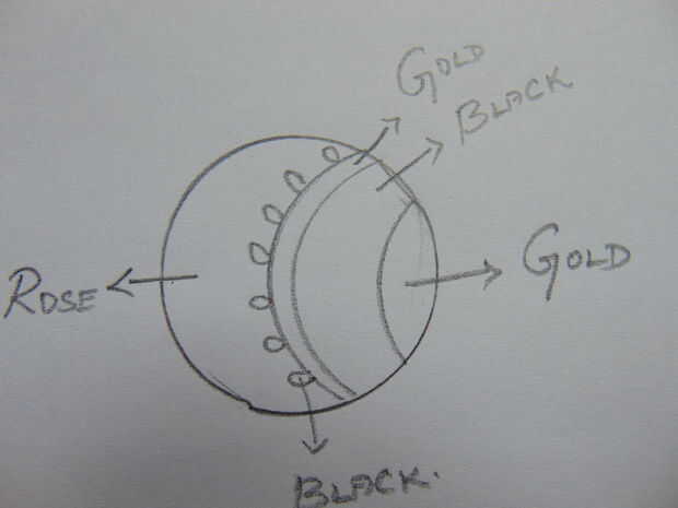 Contamos con sólo imaginar cómo serán nuestro colgante y pendiente parecen. La imagen de arriba va a decir el diseño que yo he planeado. Aquí va a ser negro en la parte inferior y oro y rosa estarán por encima de él. Puede utilizarse muchos combinación de colores. Azul y verde es una muy buena combinación.