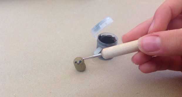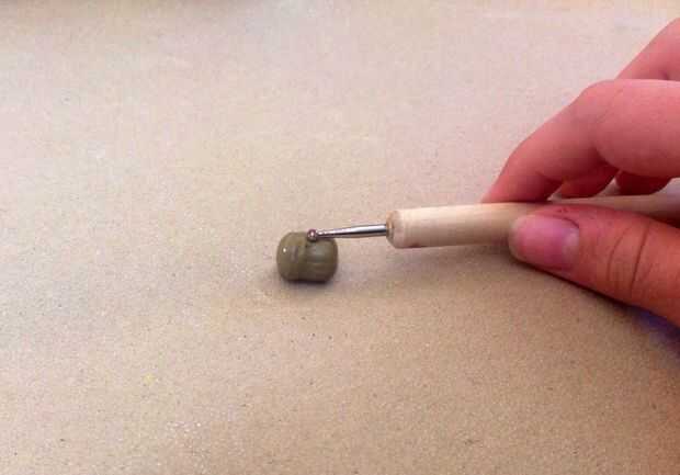 Tomar algunos arcilla tan ligero y en un registro corto Tomar un cepillo y cepillar la parte superior de la Magdalena Tomar una herramienta balling y forman la envoltura Sumerja la herramienta balling en pintura negra y pintar una cara en la Magdalena Cueza al horno y esmalte