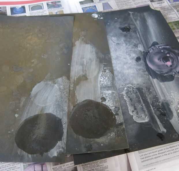 Cuando haya aclarado bien en el plato de agua y secar con el paño viejo. El mojado y seco pueden dejar algunos mugre negro así que asegúrese de que usted bajar.