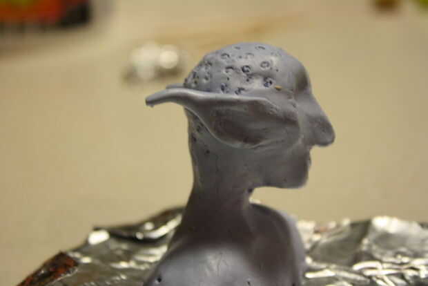 el reto fue crear un títere... y ese títere tenía que ser raro.Así nació el Alien grisElegí un muñeco de ventrílocuo, ¿por qué?  Ventrilocuo titeres sit en la vuelta que es cool, sin embargo, Grey Aliens no hable (lo que hace que aprender a tirar las
