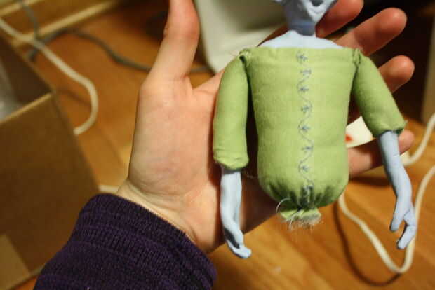 el reto fue crear un títere... y ese títere tenía que ser raro.Así nació el Alien grisElegí un muñeco de ventrílocuo, ¿por qué?  Ventrilocuo titeres sit en la vuelta que es cool, sin embargo, Grey Aliens no hable (lo que hace que aprender a tirar las