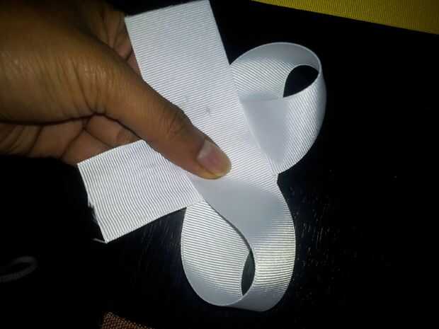 doblar la cinta en un arco. un poco como un pretzel busca forma.