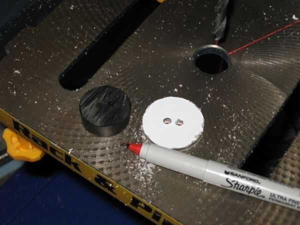 Con el 1/8" pedazo de varilla de émbolo de grueso como una plantilla (como en el centro como usted puede conseguir), marque los dos orificios como se muestra.