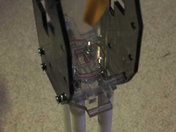Coloque el émbolo cruzado donde se muestra entre los tornillos de 1" que sobresalen de la parte delantera de la pieza del marco central.
