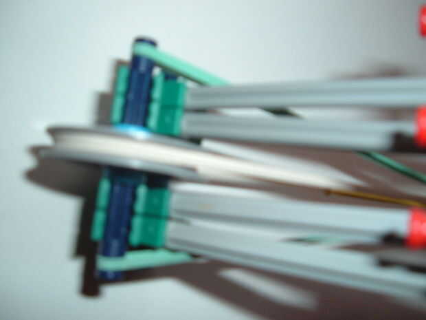aquí es un arco compuesto que hice usando varios otros diseños de arco de alrededor de la web. He utilizado el k'nex loopin' kit de montaña rusa de rayos para las piezas. Es bastante grande en comparación con la mayoría de los otros arcos en este sit