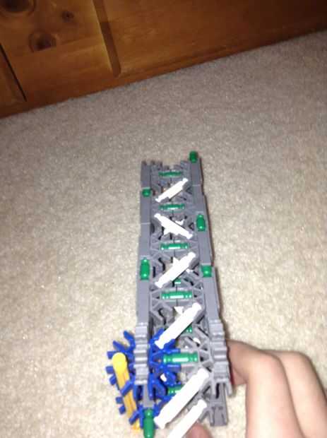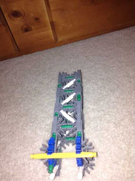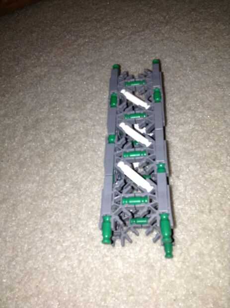 El arco blanco varillas deben ir en cada diagonal adjuntos. Hacer una pedazo con 3 de ellos y hacer otro con 5 en dos lados al lado de uno con el otro y 3 en los otros dos lados fotos 1-4 todos cuatro lados del trozo con la barra amarilla foto 5 los cuatro lados básicamente lo mismo