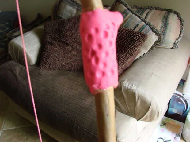 Que vas a obtener algunos arcilla y crear un resto agarre y flecha. Asegúrese de que la arcilla está en el centro del arco. Entonces un airsoft BB y crear agujeros para un apretón.