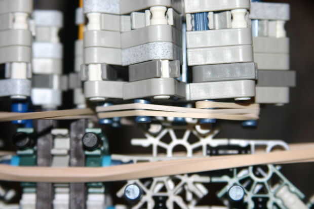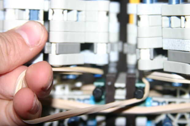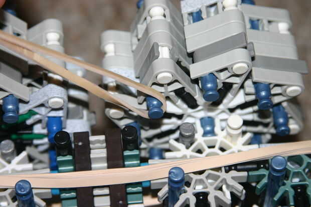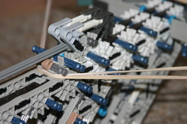 6) banda guía alrededor de la barra negra y gancho en otra torreta
