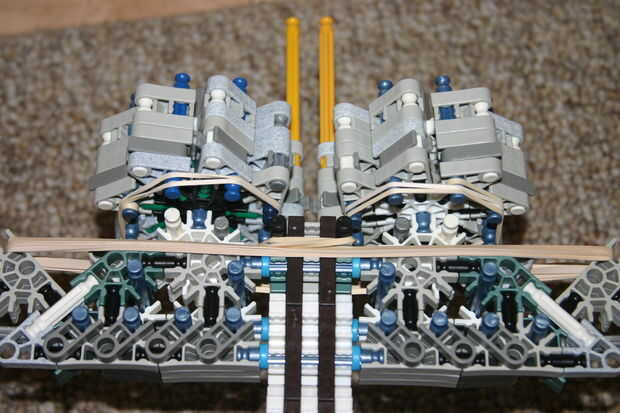 5) torreta gire hacia abajo un par de veces, haciendo que la banda va sobre las barras de azul, no bajo
