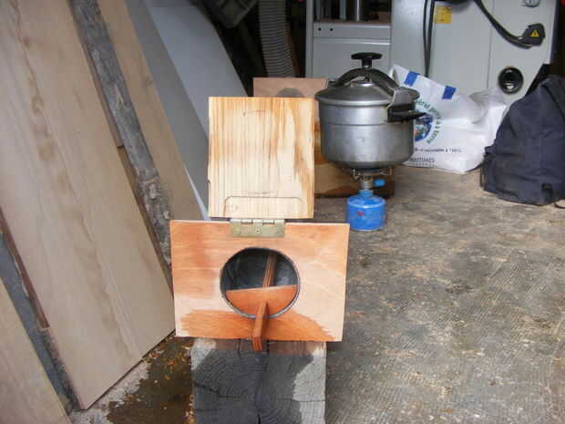La máquina toma una media hora, a calentarse, tienes que poner suficiente agua en la olla, pero luego, en menos de diez minutos, sus listones de madera suaves como la goma de mascar. Sin embargo, la suavidad dura sólo un par de minutos, incluso menos que creo, así que tienes que formar muy rápidamente.