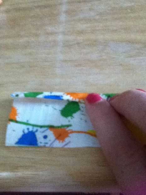 ¡¡¡Que te diviertas!!!Paso 1: corte...Corte un 9,5 en la tira de la cinta. Pliegan por lo que es una tira de 4,5 en cara, doble de cinta del conducto.Paso 2: pellizcos... Recoger la cinta en el medio.Paso 3: grabar...Use un pequeño trozo de cinta y c