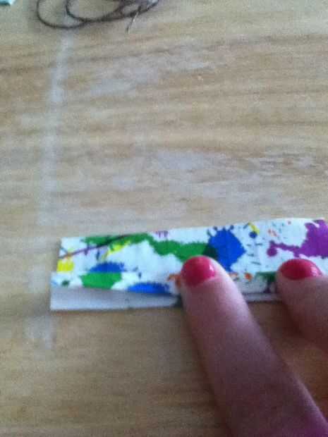 ¡¡¡Que te diviertas!!!Paso 1: corte...Corte un 9,5 en la tira de la cinta. Pliegan por lo que es una tira de 4,5 en cara, doble de cinta del conducto.Paso 2: pellizcos... Recoger la cinta en el medio.Paso 3: grabar...Use un pequeño trozo de cinta y c