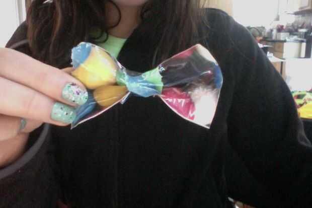 arcos de la cinta de conducto son grandes!Usted puede poner en los zapatos o clips o pulseras!Paso 1: Paso 1 En primer lugar uno o dos colores.Dos colores si desea que cada lado del arco para ser diferente.Tome su color y el ojo qué tan grande que qu
