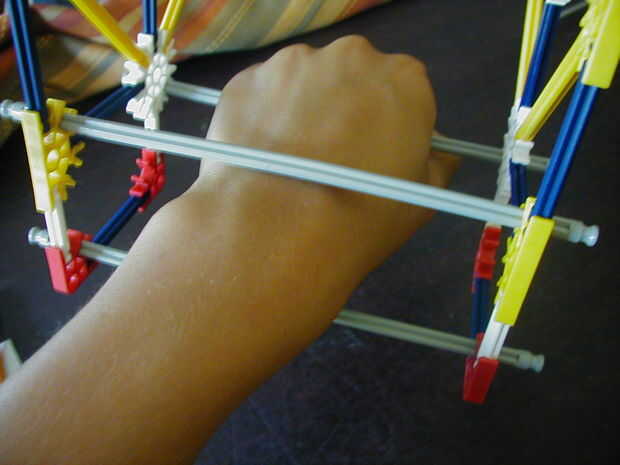 Ponga su mano no dominante entre las dos barras grises en la parte inferior. Continuación, mantenga pulsado en la barra gris fuera más.