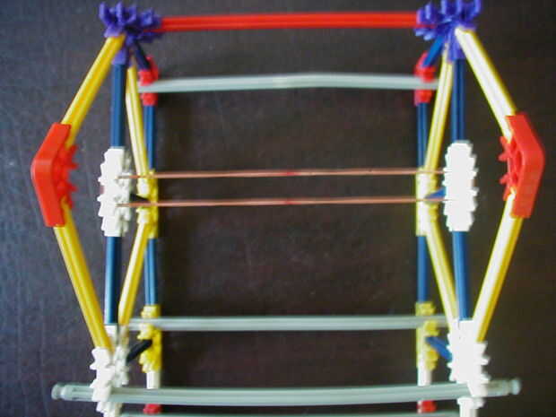 La goma va en 2 de los conectores blancos en los marcos. Piezas necesarias: 1 banda de caucho.