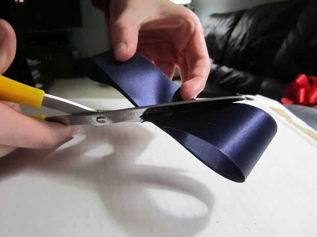 3. Corte una línea diagonal en un lado en el medio, donde pellizca la cinta.