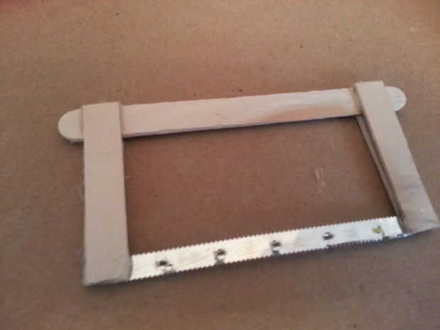 Yo quería hacer una especie de hoja en el borde de corte de una caja de papel de estaño. Me di cuenta aunque en orden para esta pieza delgada ser tieso tuvo lugar enseñado. Así que decidí hacer un arco de sierra mini fuera de él.Paso 1: Recopilación