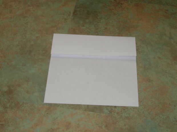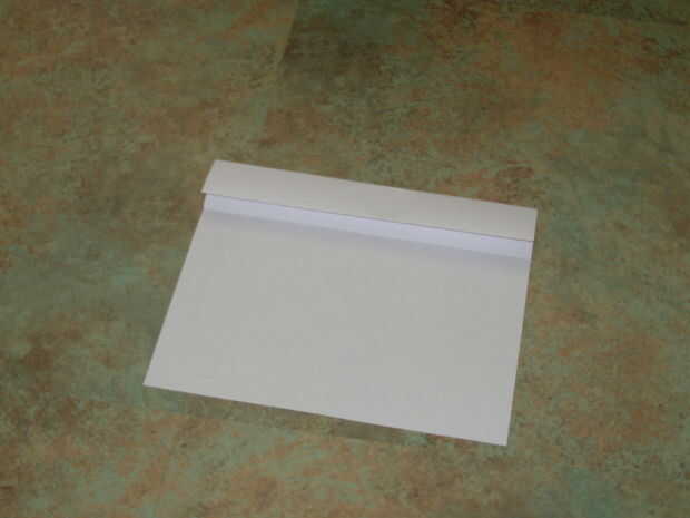Ahora, vas a doblar el papel desde el borde superior apenas sobre el doblez de Valle (uno que acaba de hacer). Conserve este doblado y repita el proceso dos veces más. Después de haber hecho esto, poner el manojo de doblado en la parte superior hacia abajo usando el pliegue que hizo en el principio hay una pila aseada de capas en el borde superior de la vela.