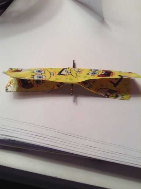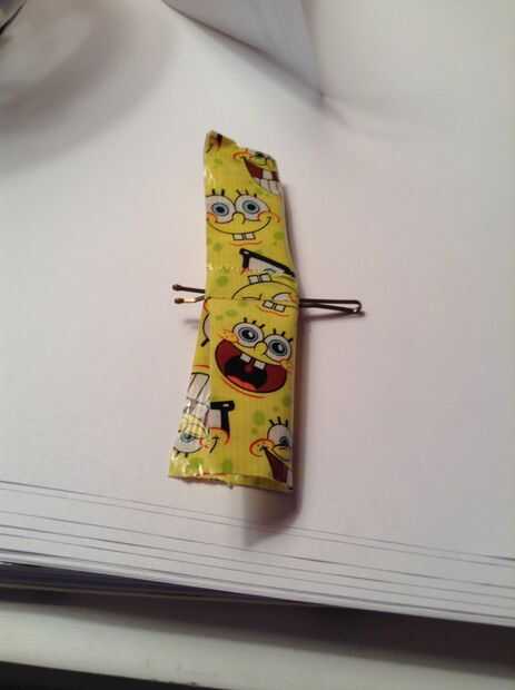 ¡¡¡Que te diviertas!!!Paso 1: corte...Corte un 9,5 en la tira de la cinta. Pliegan por lo que es una tira de 4,5 en cara, doble de cinta del conducto.Paso 2: pellizcos... Recoger la cinta en el medio.Paso 3: grabar...Use un pequeño trozo de cinta y c