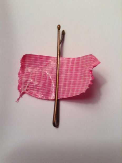 se necesita:Su color favorito de cintaHorquillaReglaTijeras o un cuchillo del ExactoPaso 1: Paso 1Cortar un pedazo de 18.5 pulgadas de cinta.Paso 2: Paso 2 Doblar la pieza por la mitad pero deja un pequeño pedazo de lado pegajoso todavía libre. Luego