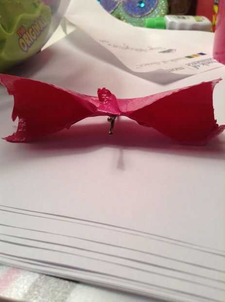 ¡¡¡Que te diviertas!!!Paso 1: corte...Corte un 9,5 en la tira de la cinta. Pliegan por lo que es una tira de 4,5 en cara, doble de cinta del conducto.Paso 2: pellizcos... Recoger la cinta en el medio.Paso 3: grabar...Use un pequeño trozo de cinta y c