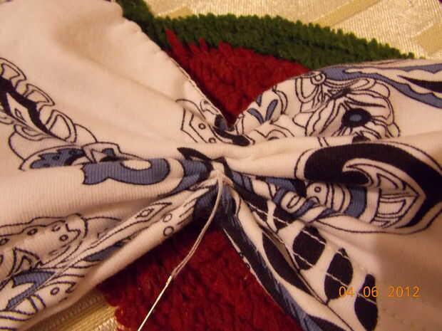 2. Ejecute su hilo y aguja por en medio de los pliegues para asegurar el arco.