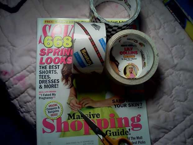 Paso 1: Se necesita: -Cinta adhesiva (1 color) - pelo pinPaso 2: Paso 1 Cinta para ductos 2 hacer tiras aproximadamente una pulgada de largo. Colóquelos uno encima del otro.Paso 3: Paso 2 Haga 1/2 una pulgada de largo de cinta del conducto, entonces