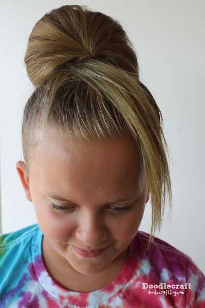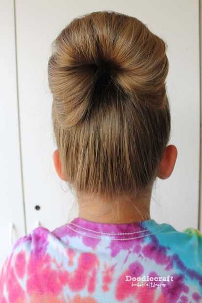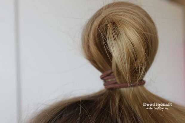 No tire el cabello a través de... hacer un bollo de cola de caballo.
