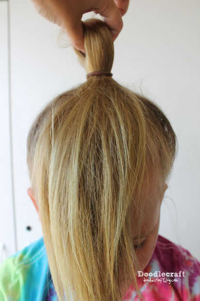Hacer una cola de caballo alta... justo en la parte superior de la cabeza.