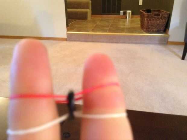Paso 1: Se necesita:Un telar del arco irisAlgunas gomas de telar del arco irisUn gancho dePaso 2: Colocar las bandas Gire el telar para que la flecha es hacia usted y coloque las bandas (ver imagen)Paso 3: Ahora gire el telar para que la flecha es ha