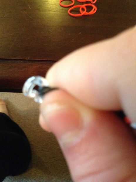 Paso 1: Se necesita:Un telar del arco irisAlgunas gomas de telar del arco irisUn gancho dePaso 2: Colocar las bandas Gire el telar para que la flecha es hacia usted y coloque las bandas (ver imagen)Paso 3: Ahora gire el telar para que la flecha es ha