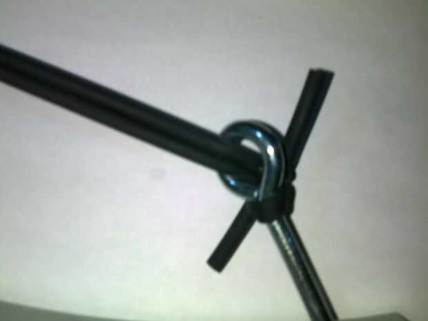 Alimentación de la cuerda de goma a través de los ojales internos para que se muevan libremente - sacar los extremos para el segundo set, pasar el caucho por el aro pero antes deshacer Deslice la tuerca el ojete, pasar la goma debajo de él para que vuelva en sí mismo y luego re Introduzca el ojal. Esto asegurará que el caucho no puede nunca pop off cuando dibujas - verás en la foto lo que quiero decir. Porque el ocuparse de goma y no una cadena de arco es bastante fácil manipular cosas que normalmente no trabajan, es un violín pero no un dolor.