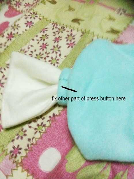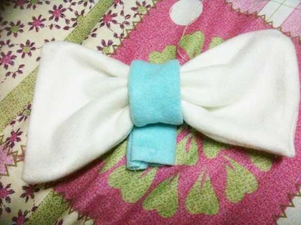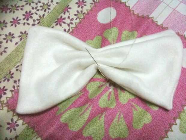 En el centro del otro extremo coser un botón... coser el botón correspondiente a la parte posterior del arco.