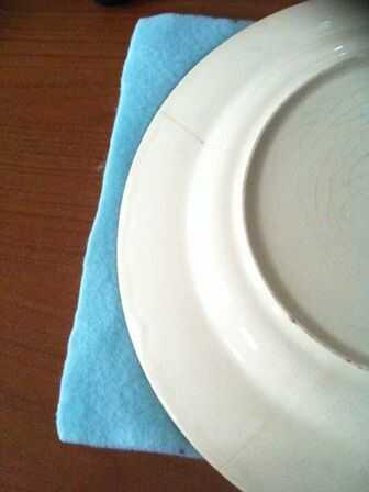 .. colocar una placa a cada lado y marque con un lápiz la curva. Coser en la curva... Corte el exceso. Juntar los bordes pero mantener una abertura para que puede volver a revés... una vez dentro... lentamente cerca de la abertura.